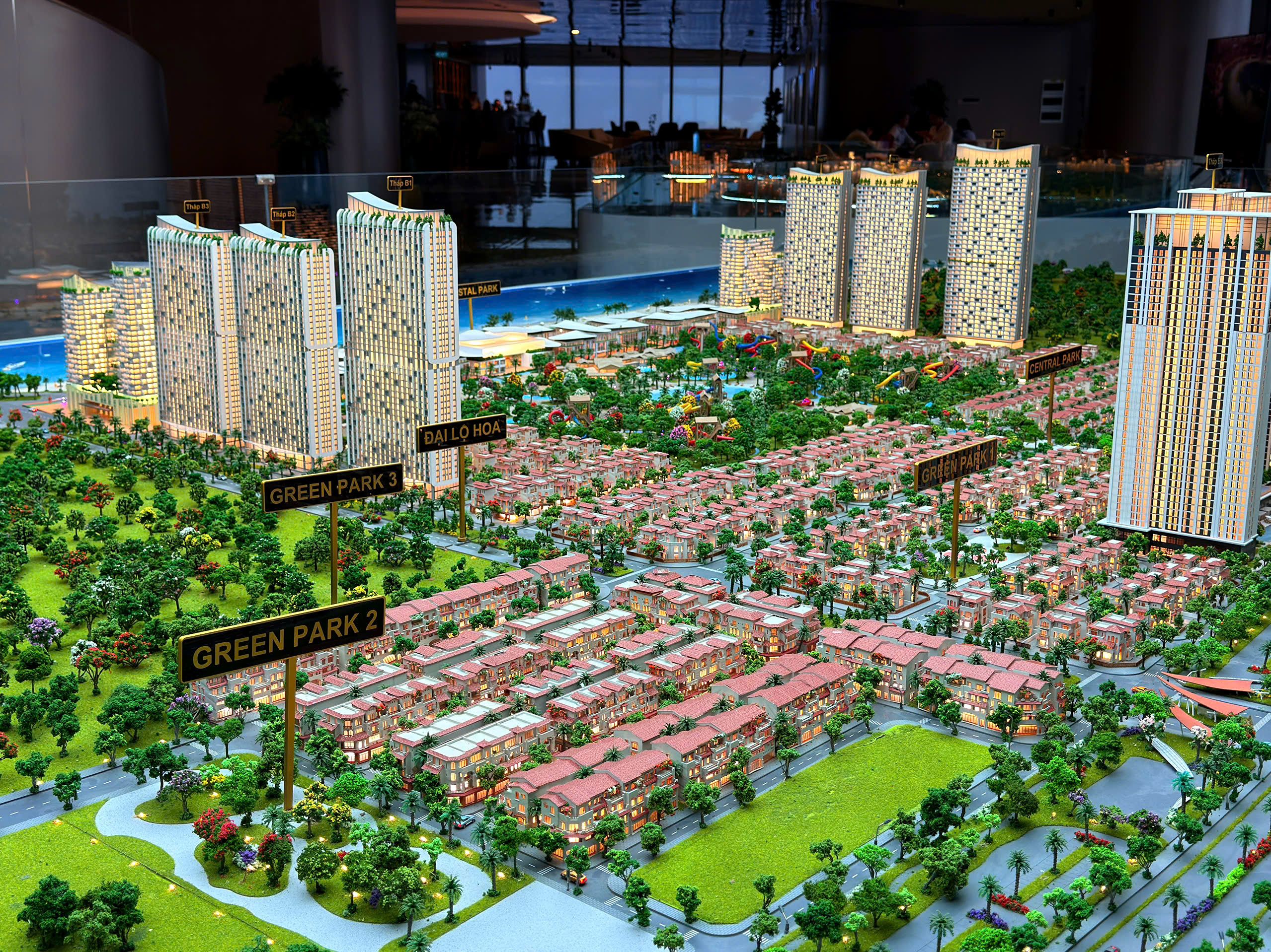 | Vị trí | Tọa lạc dưới chân các tòa tháp căn hộ, cạnh bãi đỗ xe lớn nhất dự án (1,8ha) và liền kề với 2 công viên chủ đề Central Park & Green Park. |