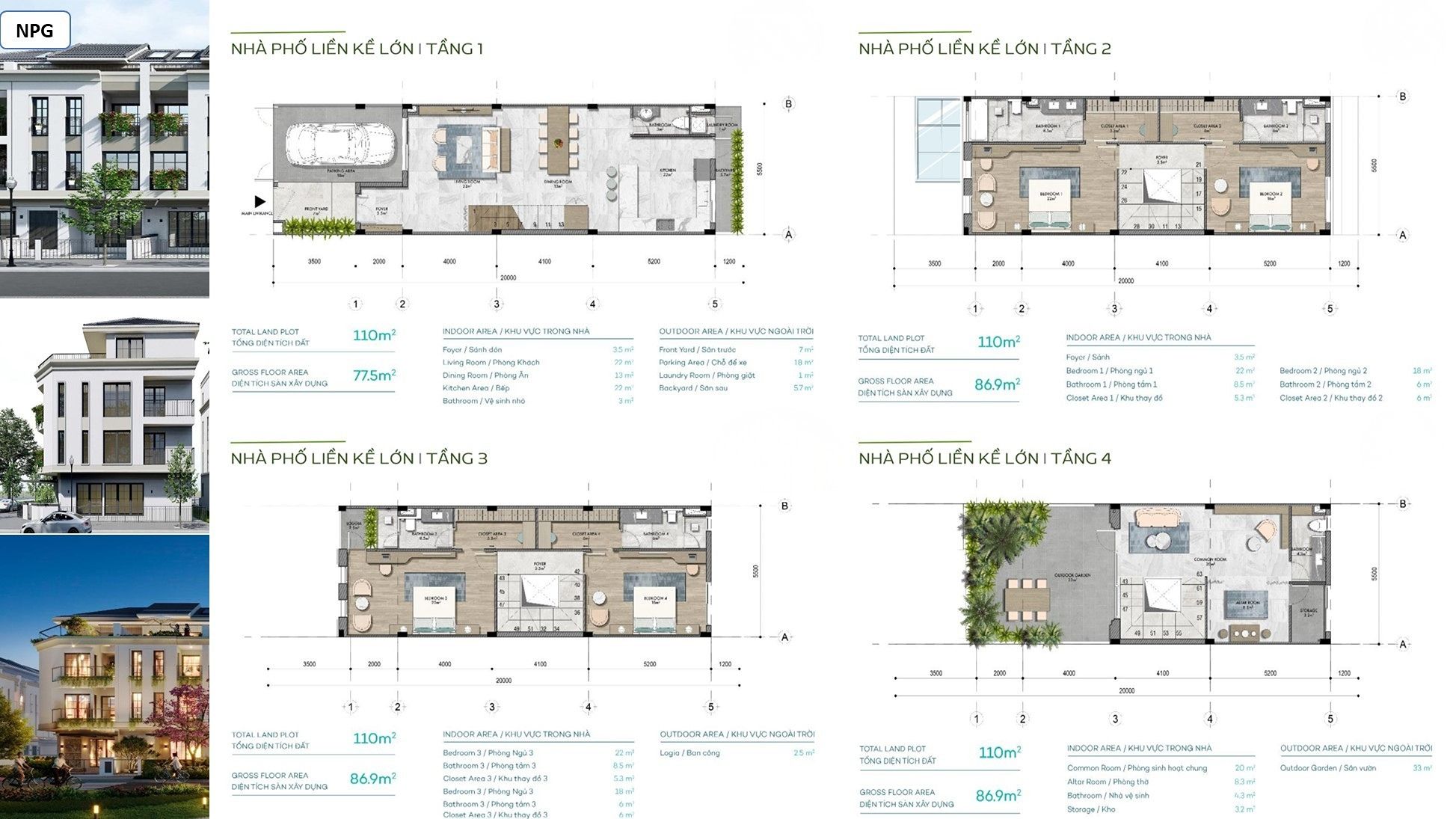 Diện tích đất: 110 – 112 m2.
