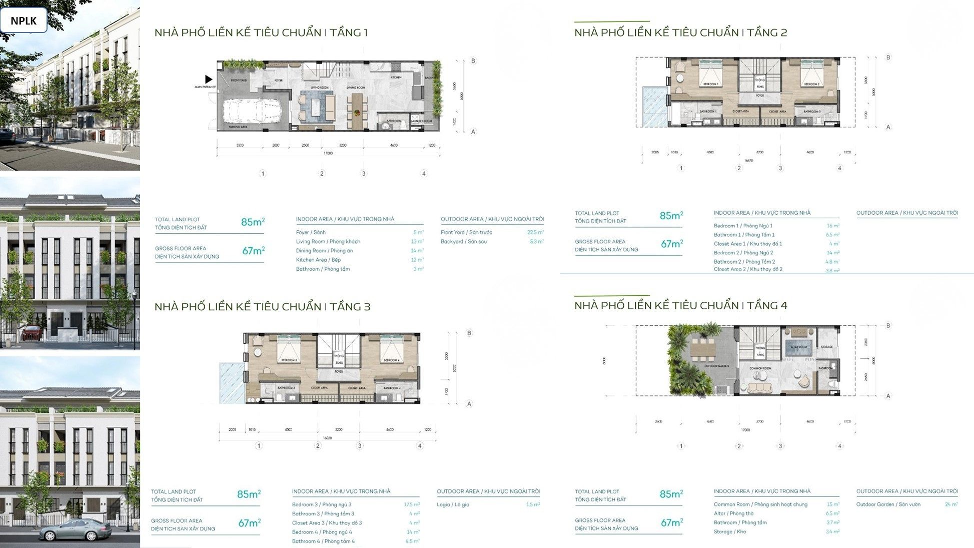 Diện tích đất: 126 – 196 m2.