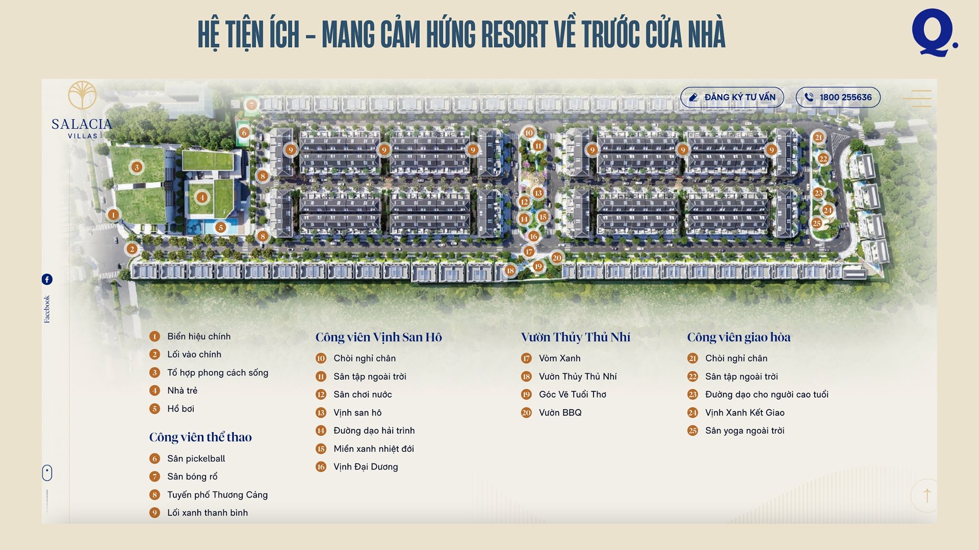 Đặc biệt, Salacia Villas là dự án hiếm hoi tại khu vực được quy hoạch chuẩn resort, tích hợp chuỗi tiện ích cho đa thế hệ cư dân như hồ bơi, sân pickleball, vườn trẻ thơ, công viên… cùng tổ hợp trung tâm thương mại và phong cách sống độc đáo.